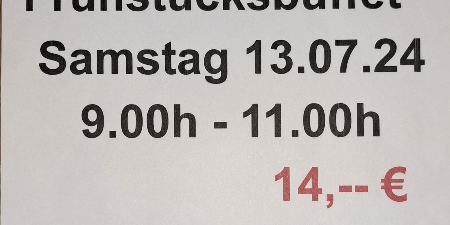 Keine 5 Gehminuten weg vom Gelände gibt es ein Frühstücksbuffet am Samstag für unsere Camper. Bitte meldet Euch verbindlich unter vorstand@dalmstock.de mit vollem Namen an, damit wir reservieren können.